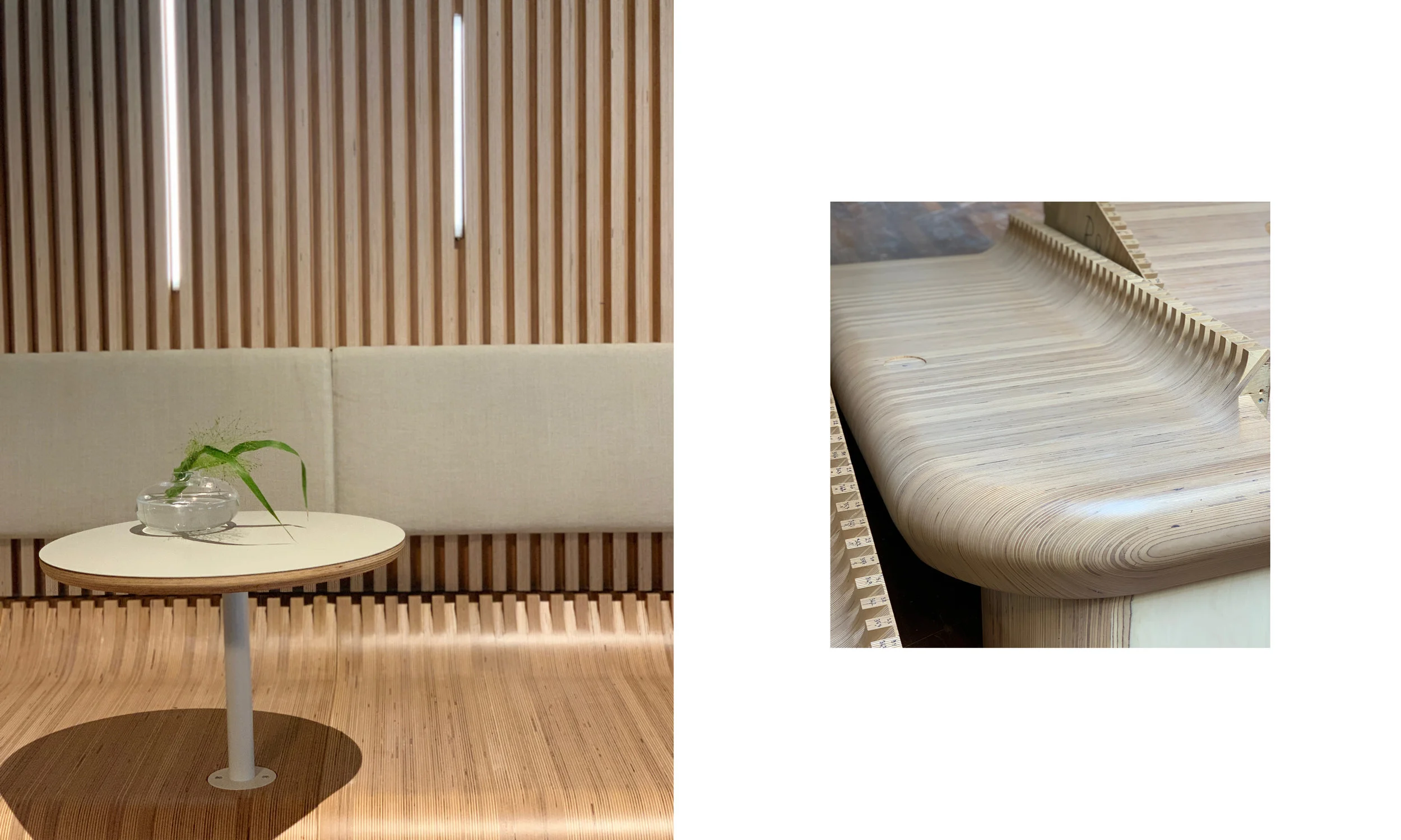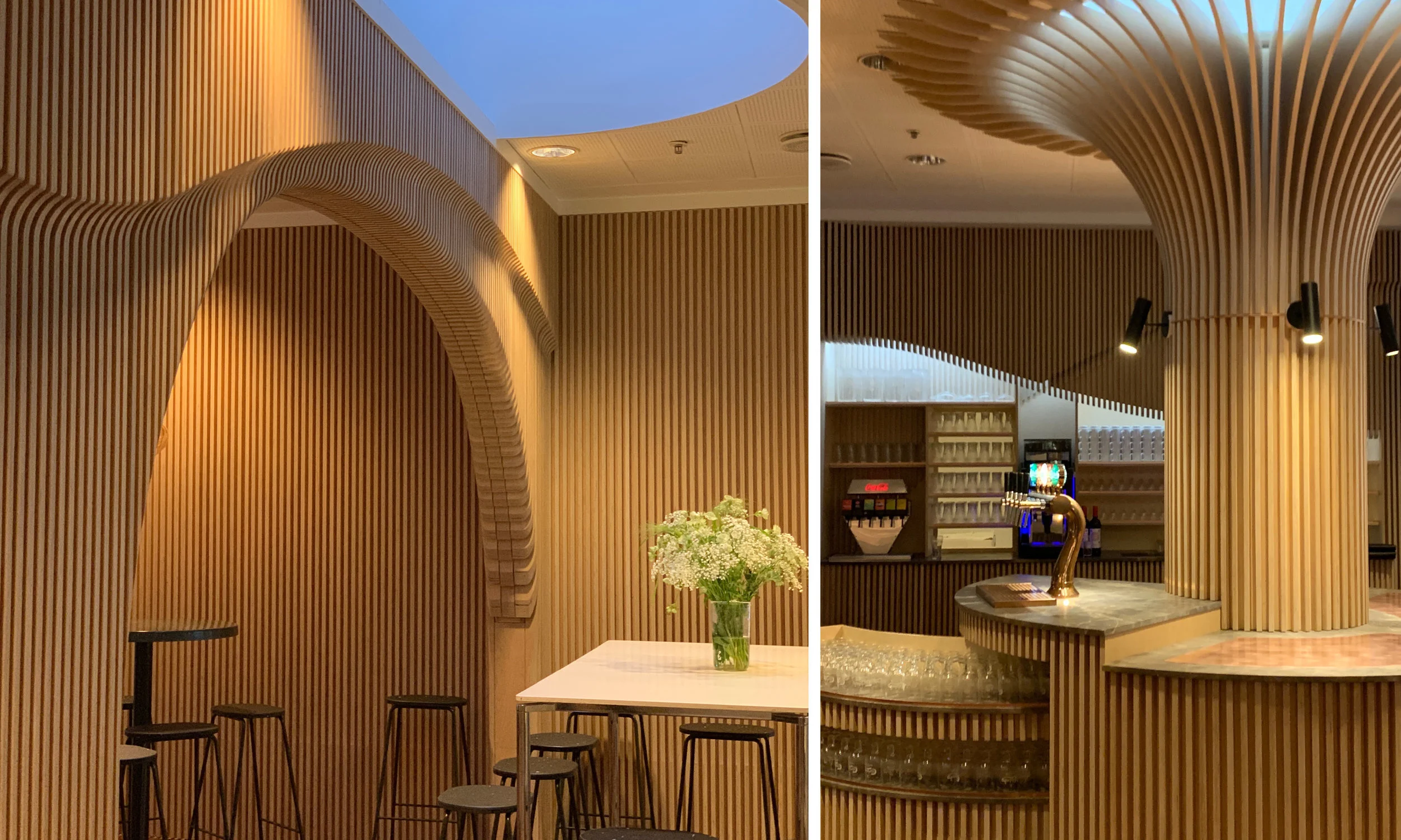 The concept is developed based on the values; quality and naturalness. The design focuses on sustainability and Danish craft traditions. One of the basic principles of the lounge is that it is open to everyone, and this is reflected in the visual expression that is warm and welcoming with organic shapes and authentic materials.